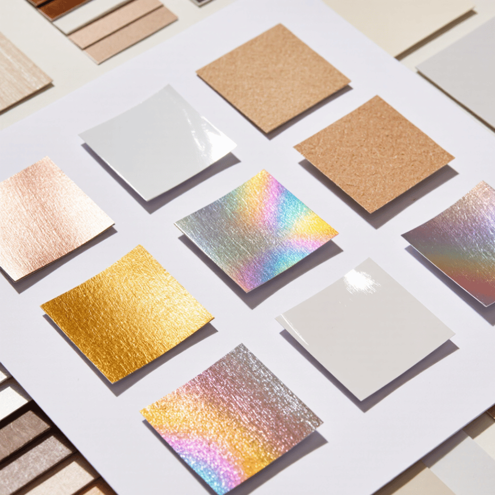 雷射/七彩箔:隨角度折射彩虹光澤,吸睛效果極強